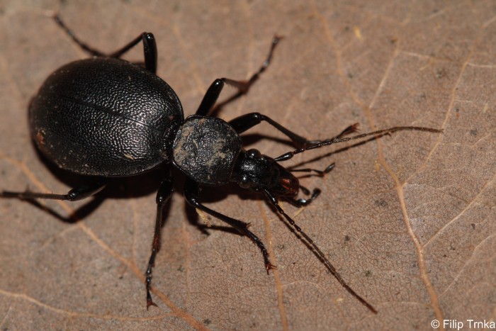 Popis: Velikost 12,5-23 mm, celé tělo je černé. Hlava a štít dlouhý a úzký, oči mírně vystupují nad okraj hlavy. Krovky jsou oválného tvaru a stejnoměrně zrnité.