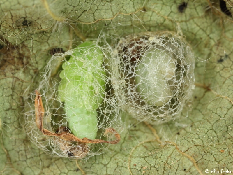 Biologie a ekologie: Dospělci od poloviny května do srpna s maximem v červnu a červenci. Imaga na nejrůznějších biotopech, od světlých lesů a jejich okrajů až po louky nebo břehy vodních toků. Bionomie není příliš dobře objasněna, druh je uváděn z nejrůznějších bylin. V našich podmínkách nejčastěji na krabilici zápašné (Chaerophyllum aromaticum). Žír larev probíhá na povrchu hostitelských rostlin (podobně jako u housenek motýlů) během května a června. Larvy tvoří typickou síťku (kokon), v které se kuklí, často přímo na rostlinách.